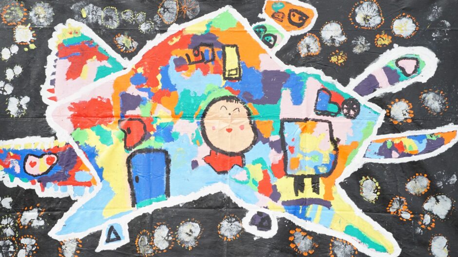 ホームお知らせ 巨大絵画アーケード展9「うちゅうのどうろではしる 未来のくるま」大冠保育園 5歳児 ぞうぐみ 2025年9月29日 未来のいろいろを想像しながら、未来のくるまを描きました。ぴかぴかの道路を走って飛んで宇宙へ行けます!