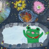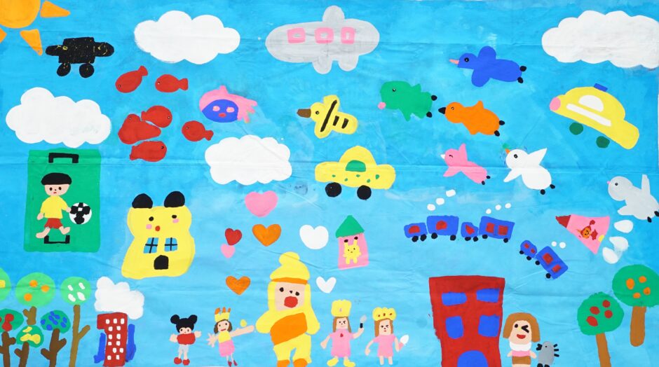 ホームお知らせ 巨大絵画アーケード展23「未来のぼくたち・わたしたちの街」願行寺こども園 2025年9月29日 皆で考える未来を一つの絵に集め、下描き色付けなど全て子どもさんの手で仕上げ素敵な絵画になりました